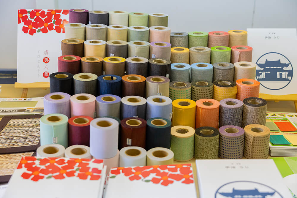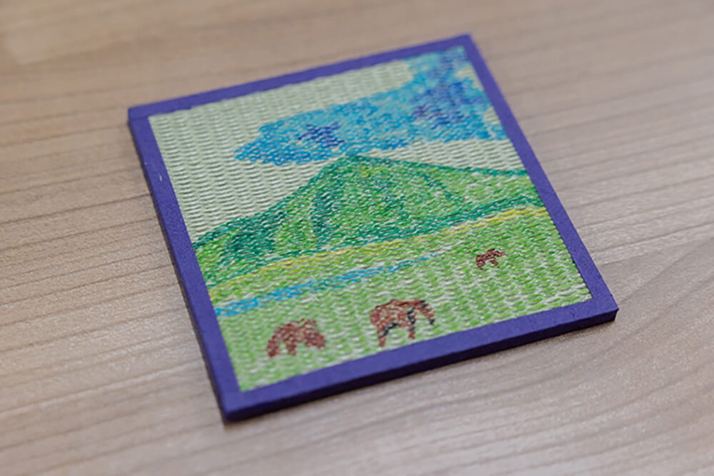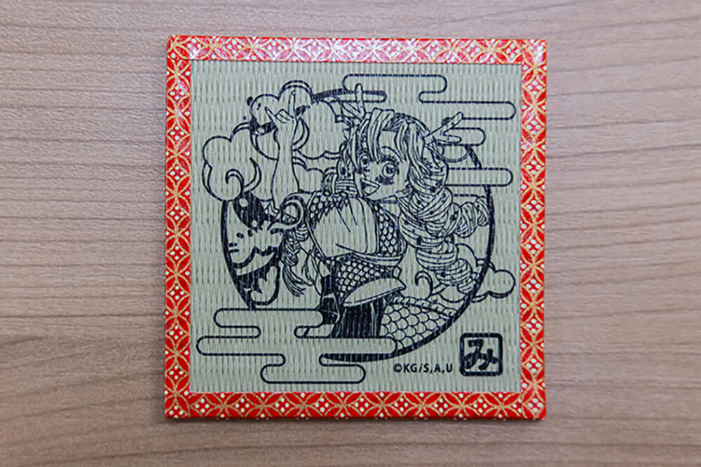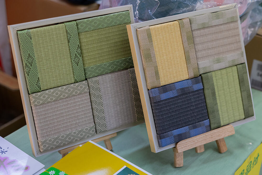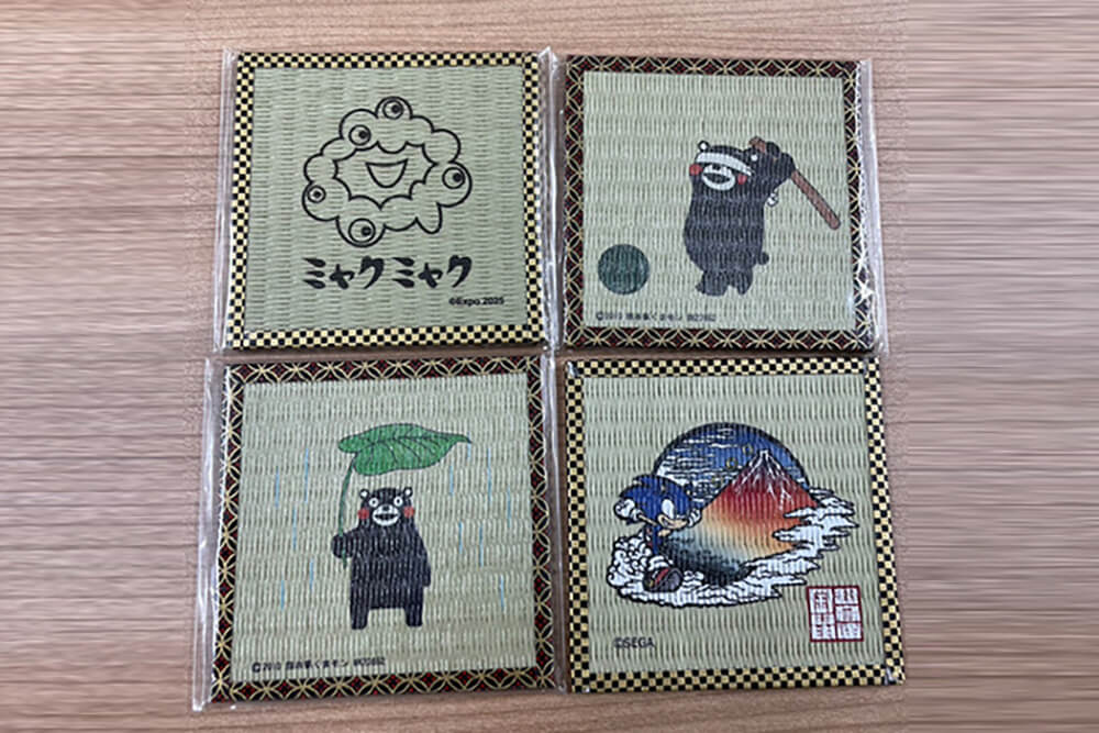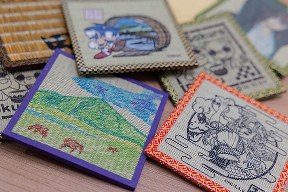 畳を使用したコースター、はがき、小物入れ等 畳グッズを製作しています。畳表への印刷技術を使い、 ロゴや絵柄等のデザインを自由に印刷することが可能です。