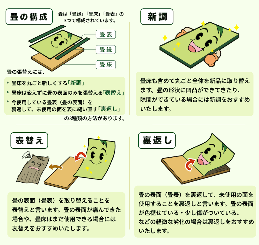 畳表替え・裏返し・新調の違い-失敗しない畳替えの基礎知識